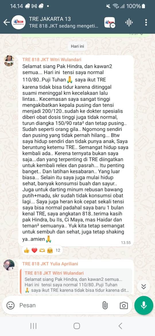 Belajar teknik TRE itu mudah dan cepat, cukup belajar 1x di pelatihan/workshopnya dan Anda bisa lakukan di rumah. Alami, tanpa obat dan tidak perlu cerita masalah.